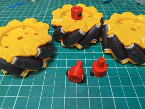 Your robot can use Mecanum wheels from DFR if you print and use these shaft adaptors. Use this OpenSCAD tool to generate 3d-printable adaptors to use these wheels with 4mm, 5mm, or 6mm shafts.